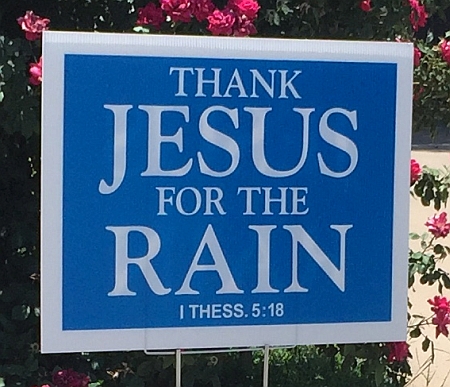 Can you ask people to pull those Pray for Rain signs out of their yards?